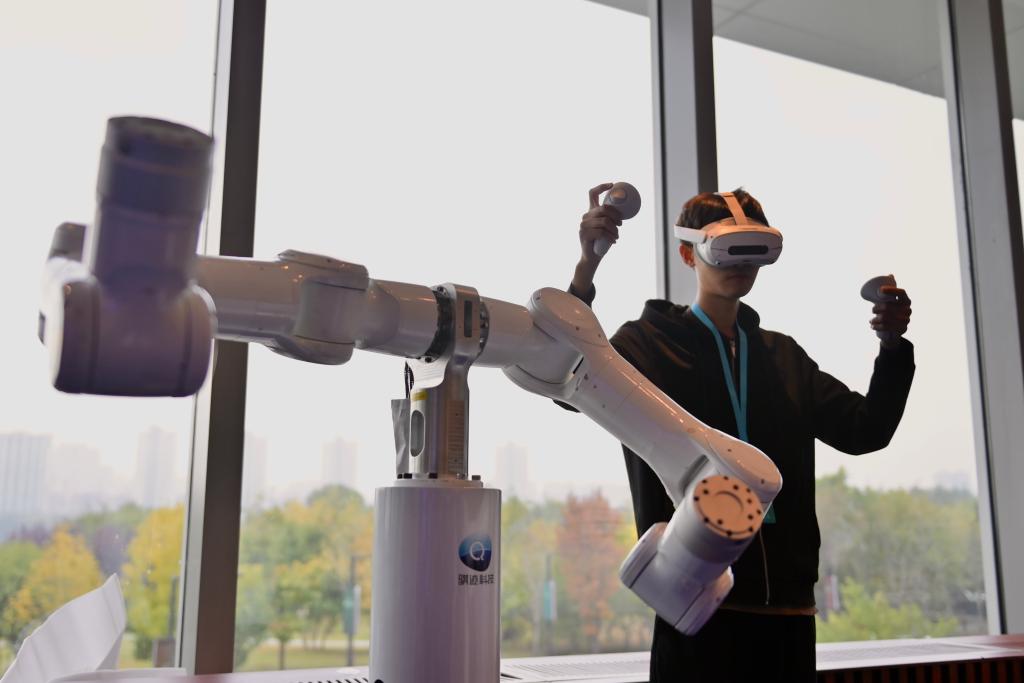 10月17日,正在广东智能系统无限公司展台,工做人员演示“全力控高精度人形臂Marvin”展品。记者 吴青昊 摄?。